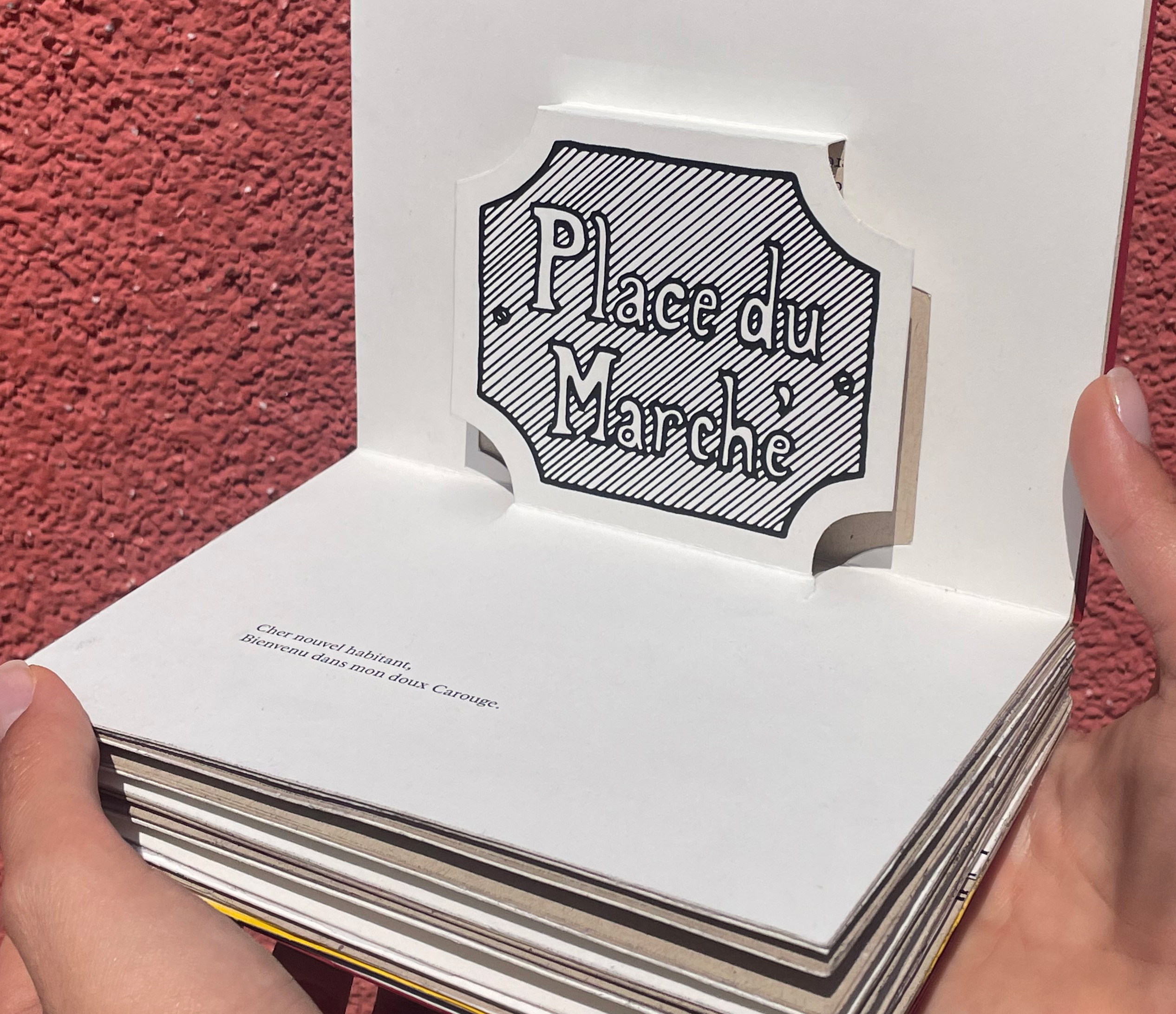 This hand-crafted diary is aimed to be transmitted to new-comer neighbours in the Genevan old town of Carouge. One can discover a visual walkthrough of the different curiosities that makes this little neighborhood so special.